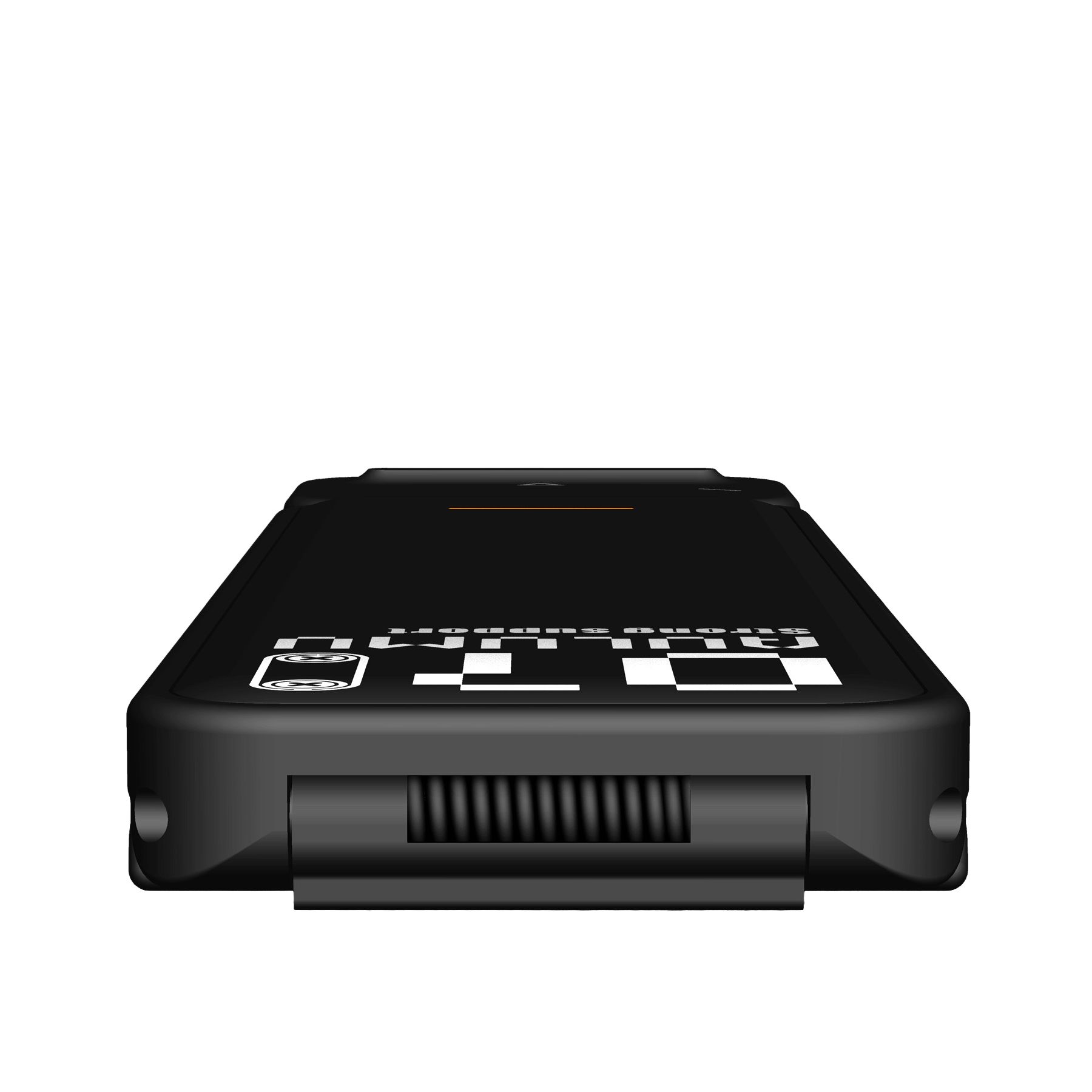 - Stylový design: Matná černá „ninja black“ s jemnými detaily, oranžovou linkou a moderním pixelovým fontem.