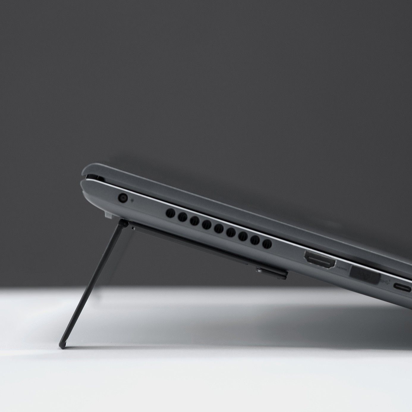 Ergonomie bez bolesti – Zvýšením notebooku do ideálnější pozice ulevíte zápěstím, krku i ramenům při dlouhém psaní nebo sledování obrazovky. Ideální do kanceláře, kavárny i na cestování.