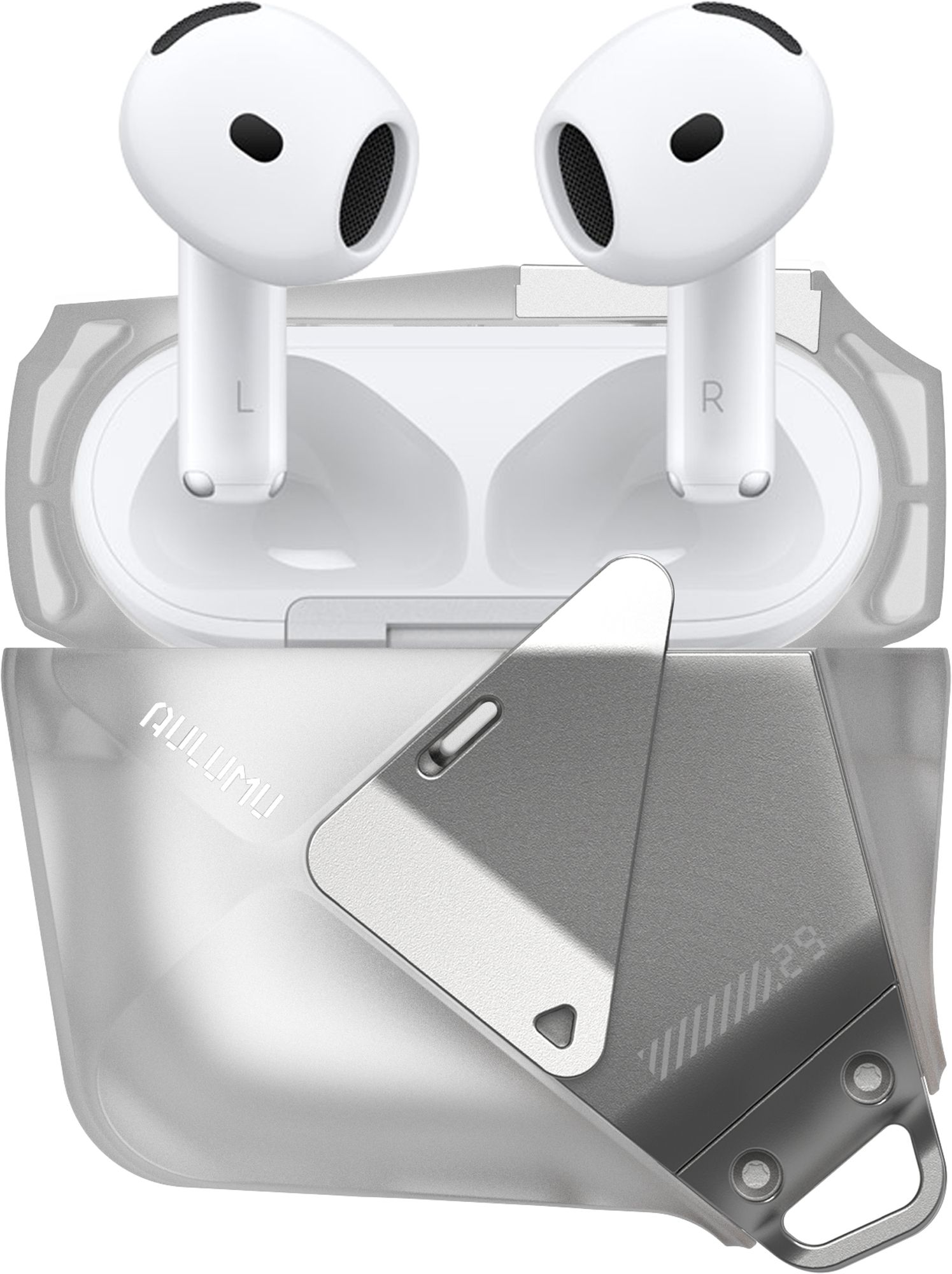 Aulumu A29 Geometric Lock & Lanyard pouzdro na AirPods 4, Translucent White