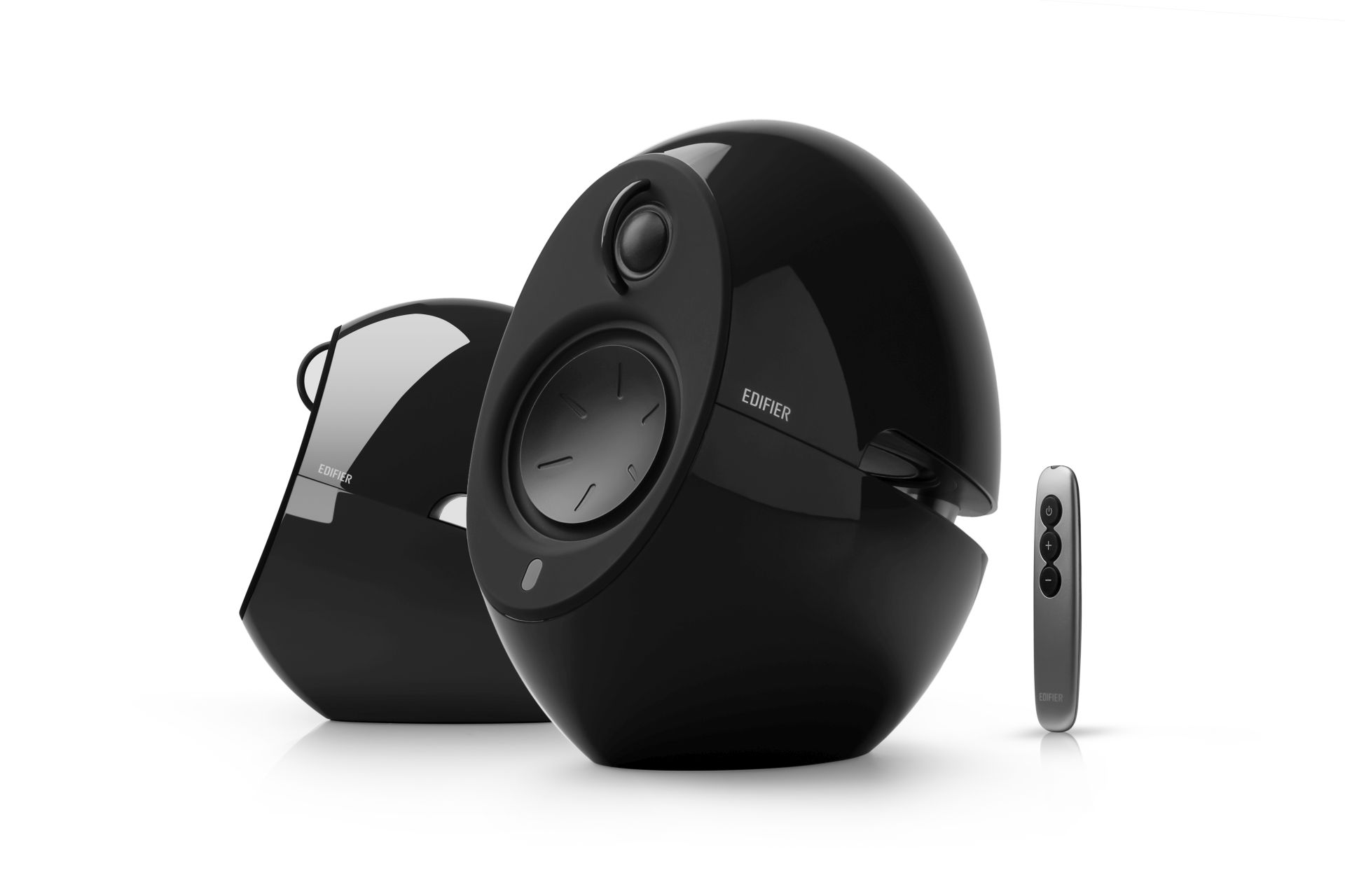 Obsah balení: reproduktory EDIFIER E25HD Luna HD, napájecí adaptér, audio kabel 3,5mm-3,5mm, audio kabel 3,5mm-RCA, optický kabel, kabel pro připojení reproduktorů, čistící hadřík, dálkový ovladač, návod k použití, bezpečnostní list.