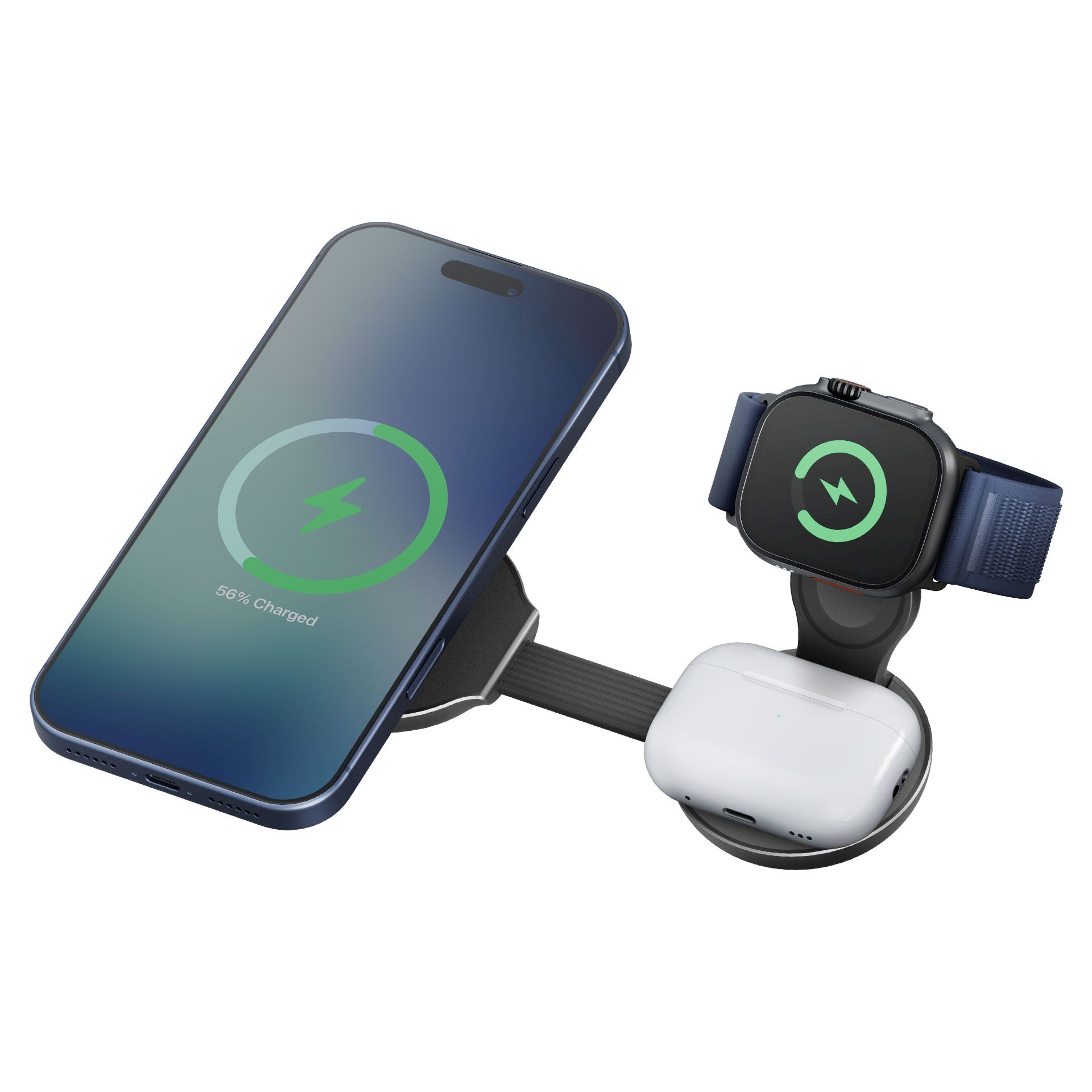 Skládací bezdrátová nabíječka 3v1, Qi2, bezdrátové nabíjení iPhone, AirPods a Apple Watch