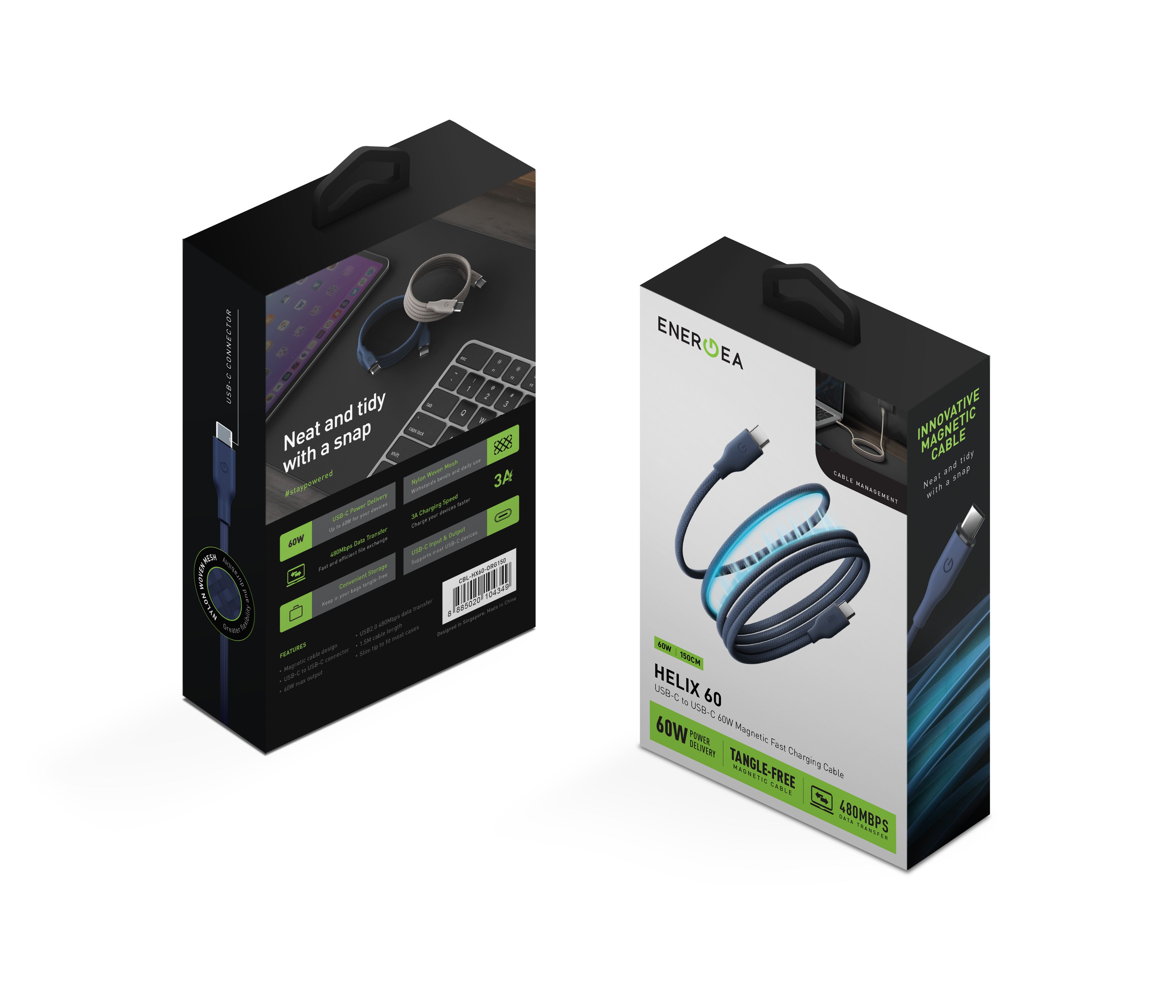 Představujeme vám HELIX 60 – moderní magnetický nabíjecí a datový kabel USB-C na USB-C s podporou Power Delivery až 60 W. Je navržen pro každodenní používání bez kompromisů: rychlé nabíjení, spolehlivý přenos dat a chytrý magnetický design, který zabrání zamotání kabelu a udrží vaši tašku i pracovní stůl dokonale přehledné.