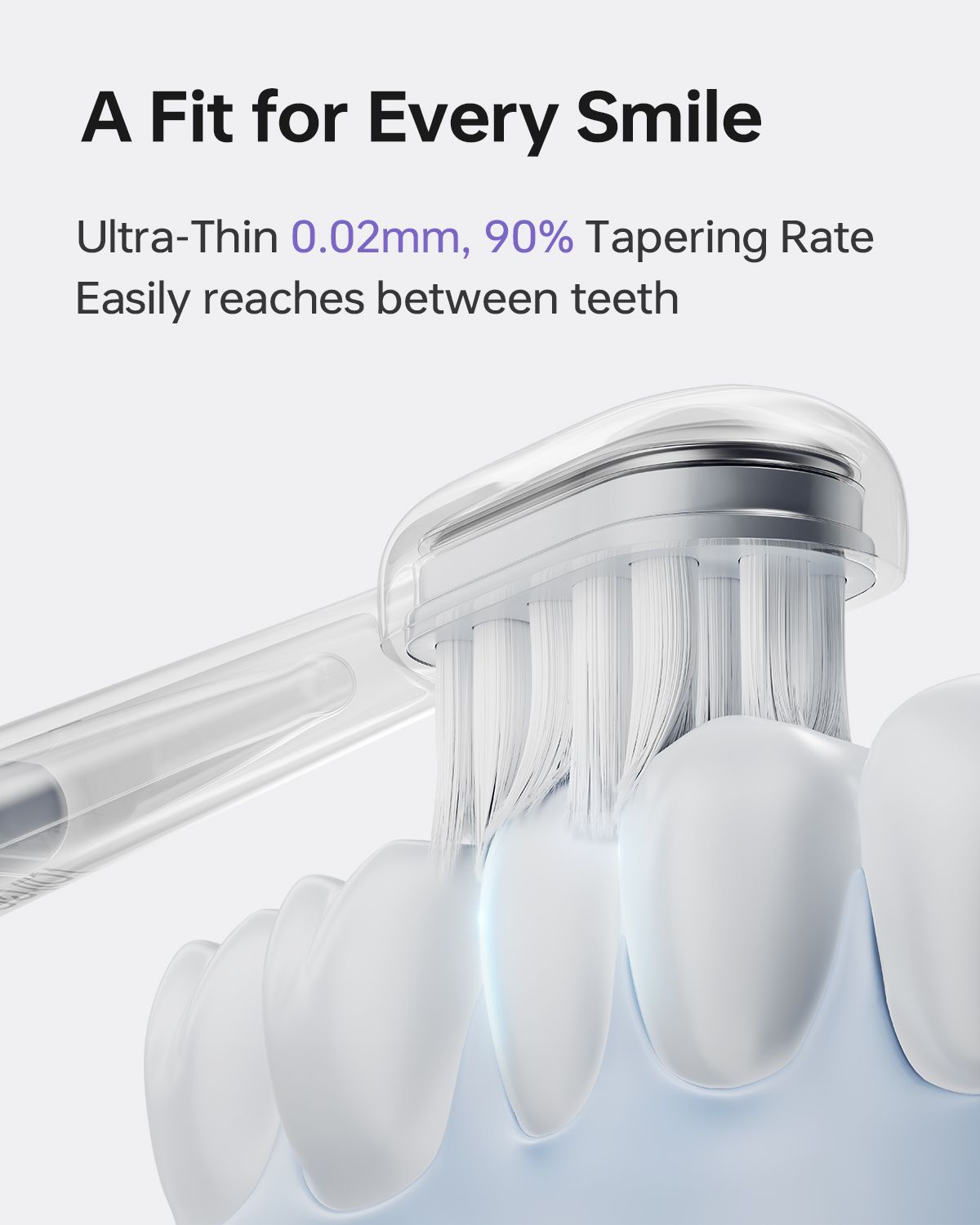 Ultra-tenké, měkké štětiny pronikají hluboko do mezizubních prostor, přičemž jsou šetrné k dásním.