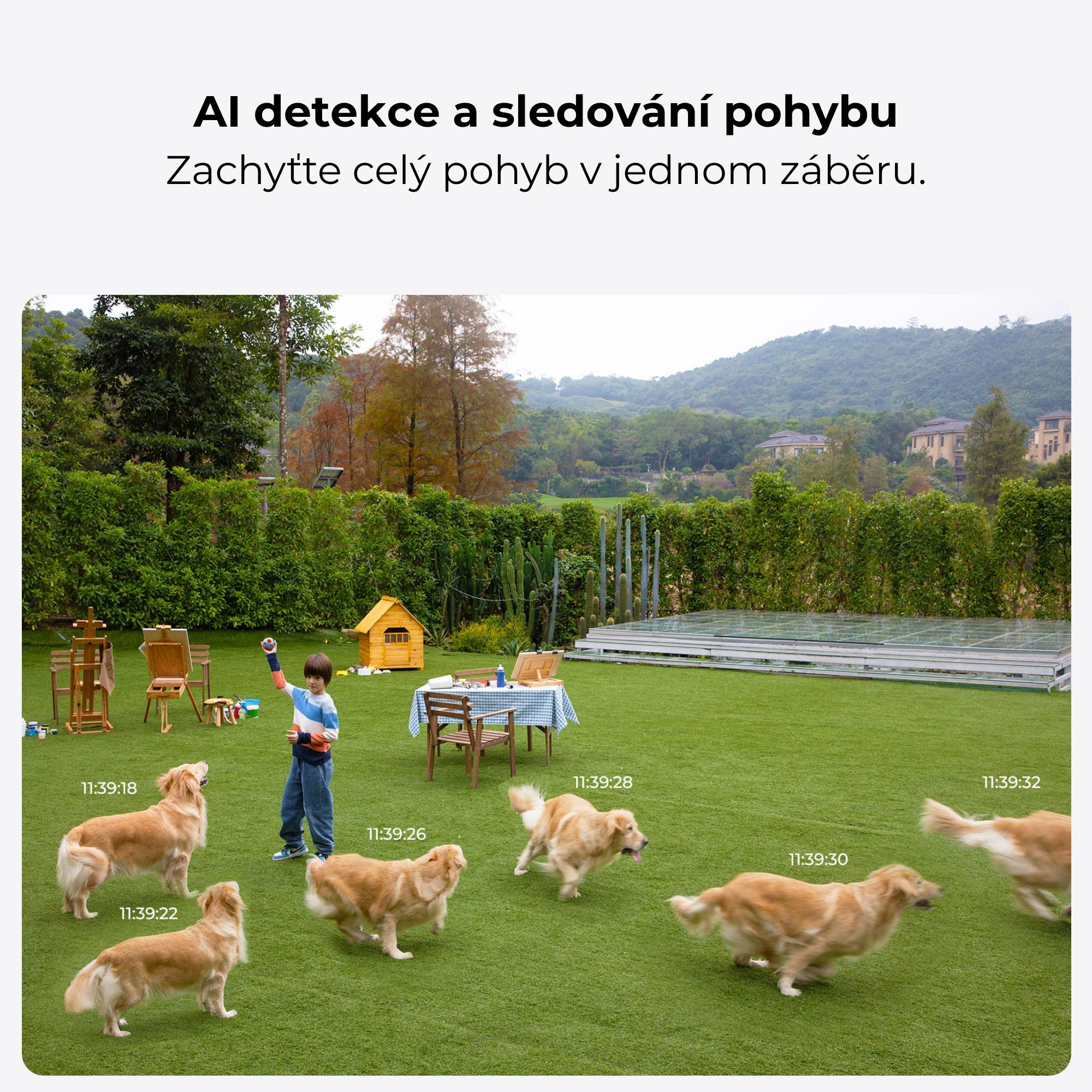 AI detekce: pohyb, osoba, vozidlo, zvíře.