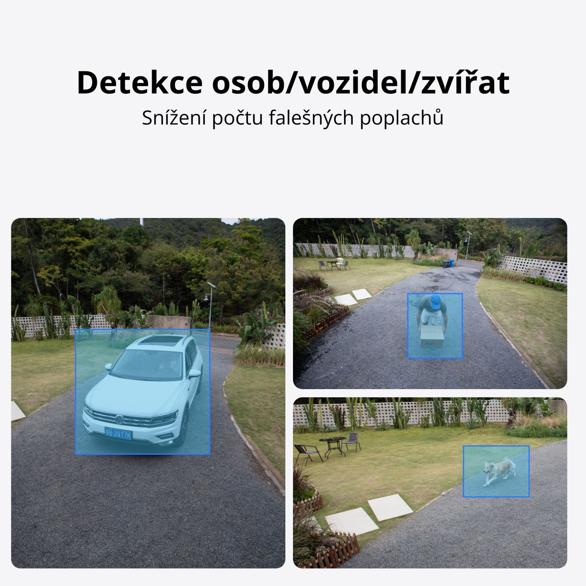 Detekce pohybu, osob, vozidel a domácích zvířat.