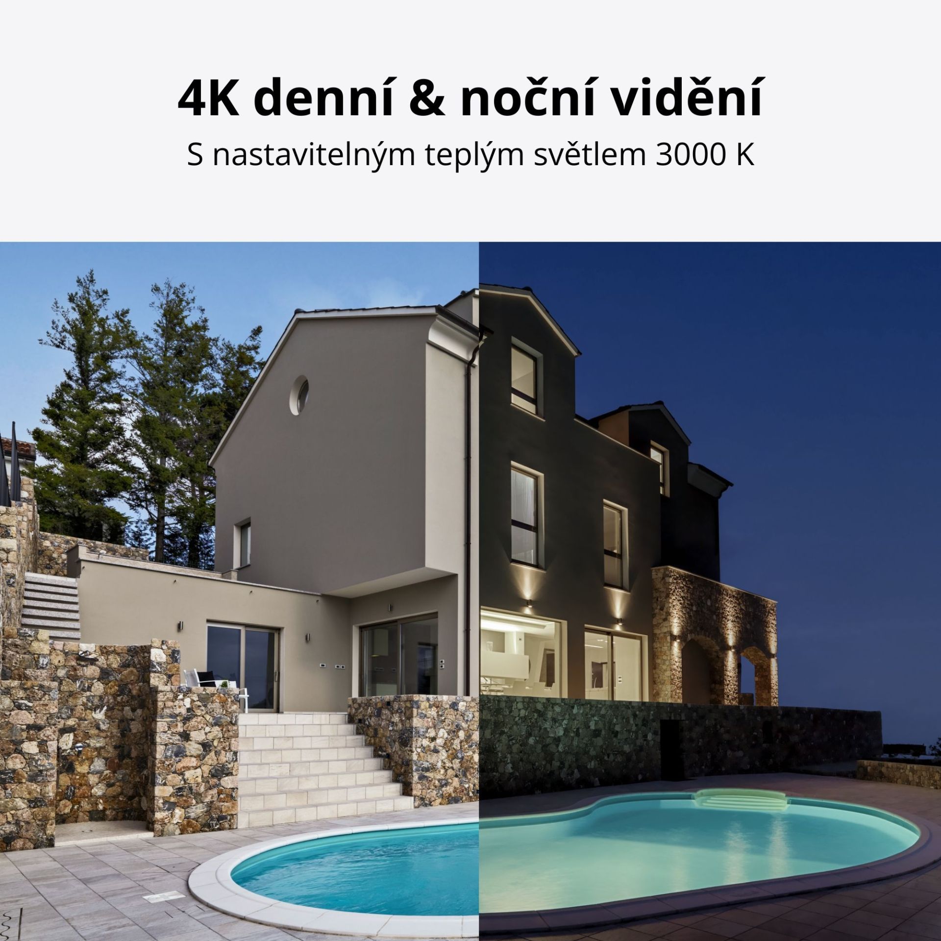 S Reolink P337 budete mít k dispozici krystalicky čisté a detailní záběry vašeho domova v rozlišení 4K Ultra HD. A to i v noci! Díky teplým světelným zdrojům o intenzitě 3000K budete mít barevné a živé snímky i za tmy. Pokud chcete, můžete přepnout do režimu infračerveného vidění pro nerušené noční monitorování.