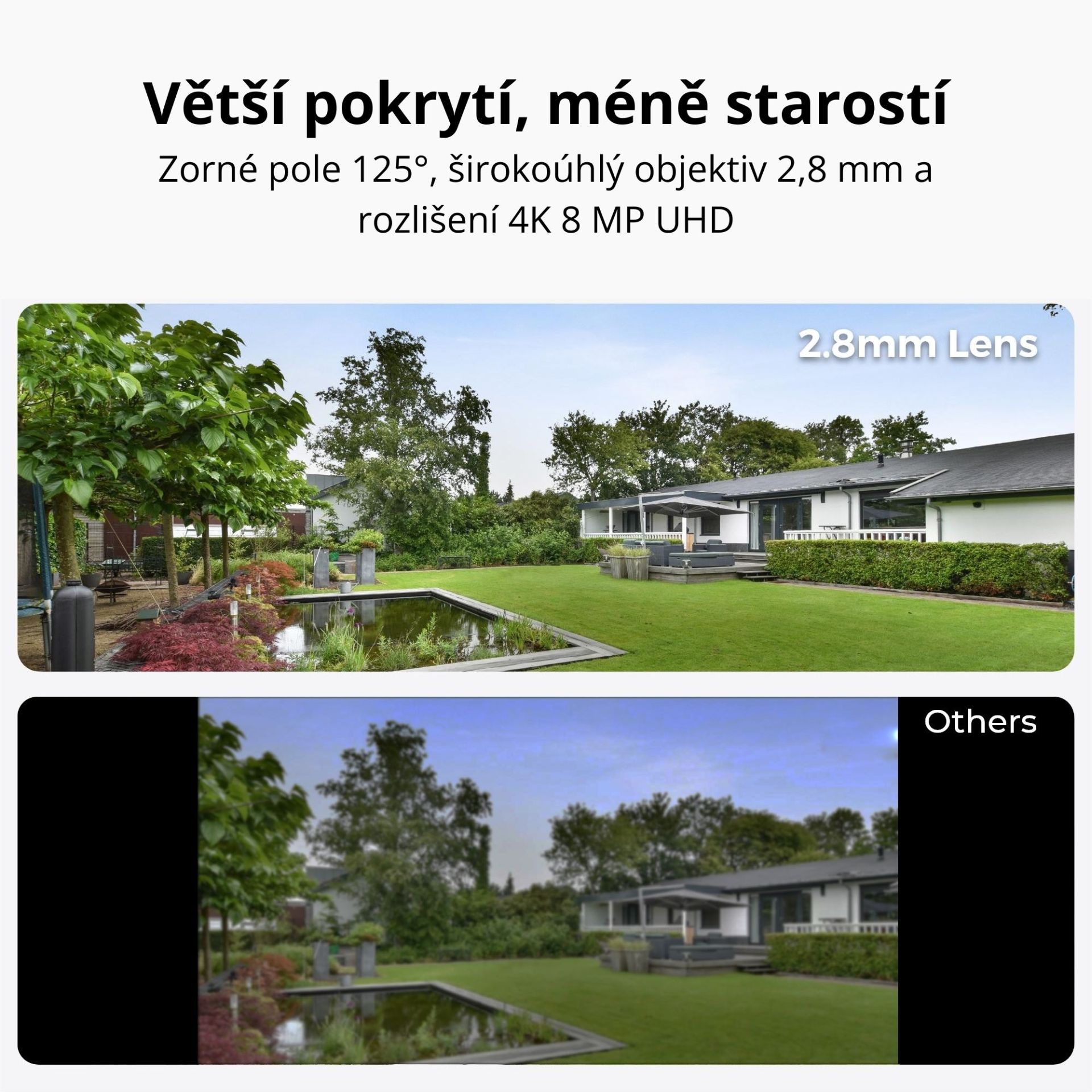 S pozorovacím úhlem 125° budete mít mnohem širší přehled o dění kolem vašeho domu. Kamera pokryje větší plochu, takže budete mít méně slepých míst a budete moci lépe chránit svůj majetek.