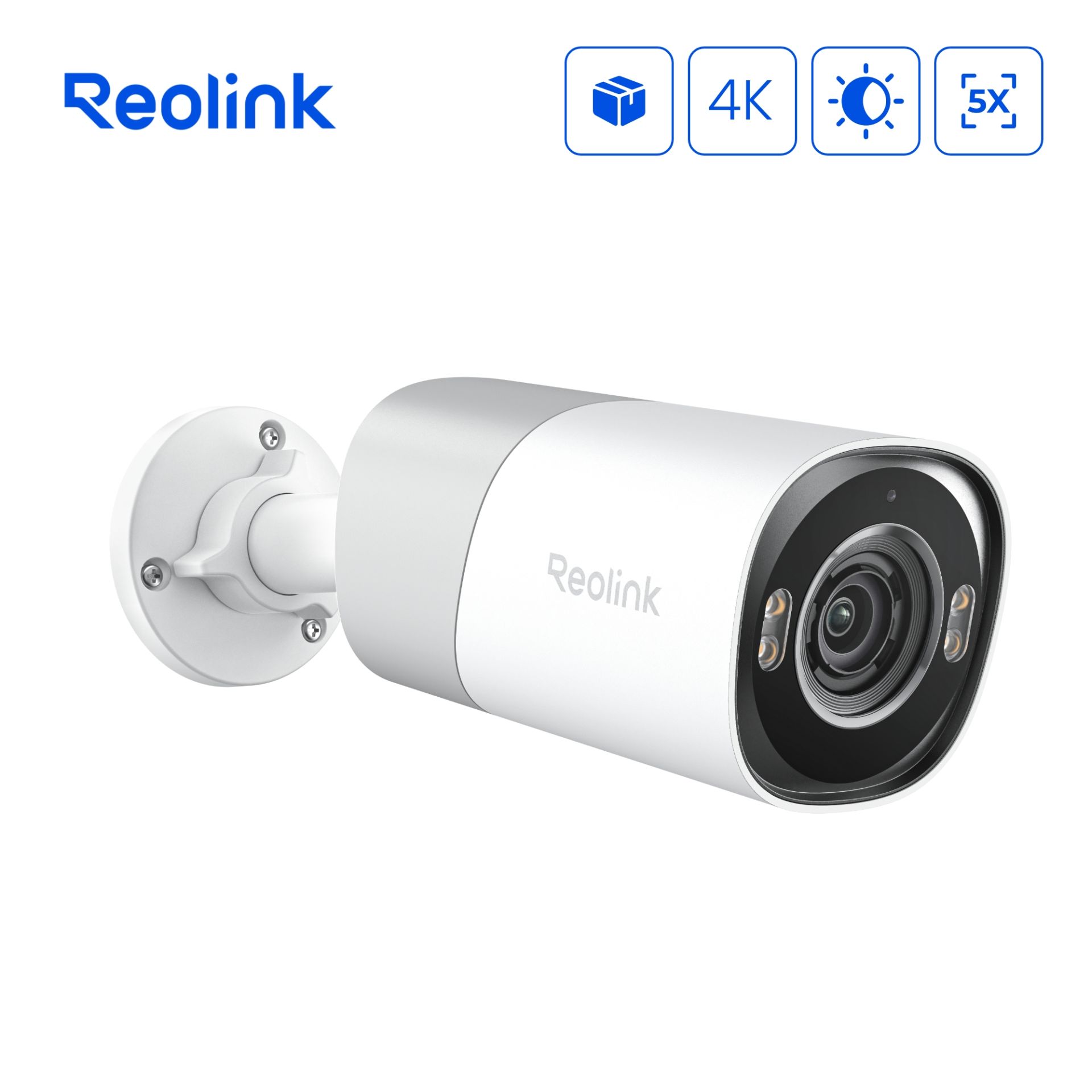 4K Ultra HD kamera, PoE, 5 x optický zoom, barevné noční vidění, detekce pohybu, osob, zvířat, motorových vozidel, nemotorových vozidel a balíků