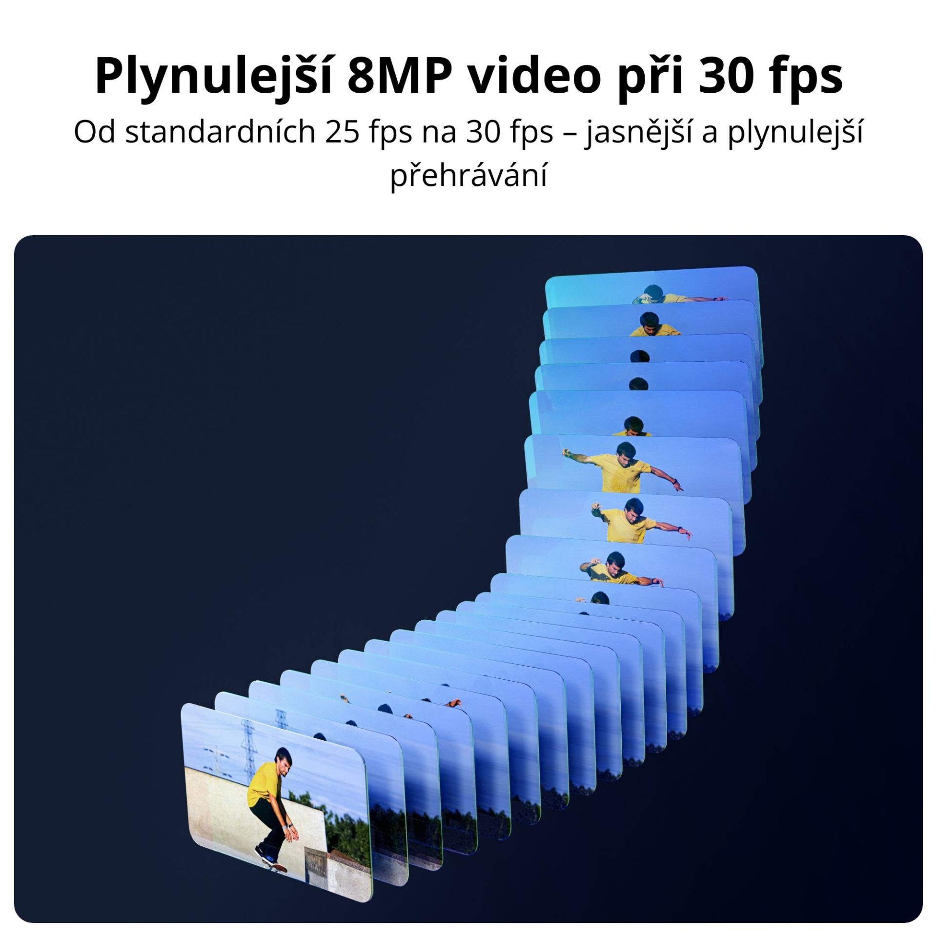 Rozlišení: 3840 x 2160 px (4K 8MP Ultra HD) při 30 fps.