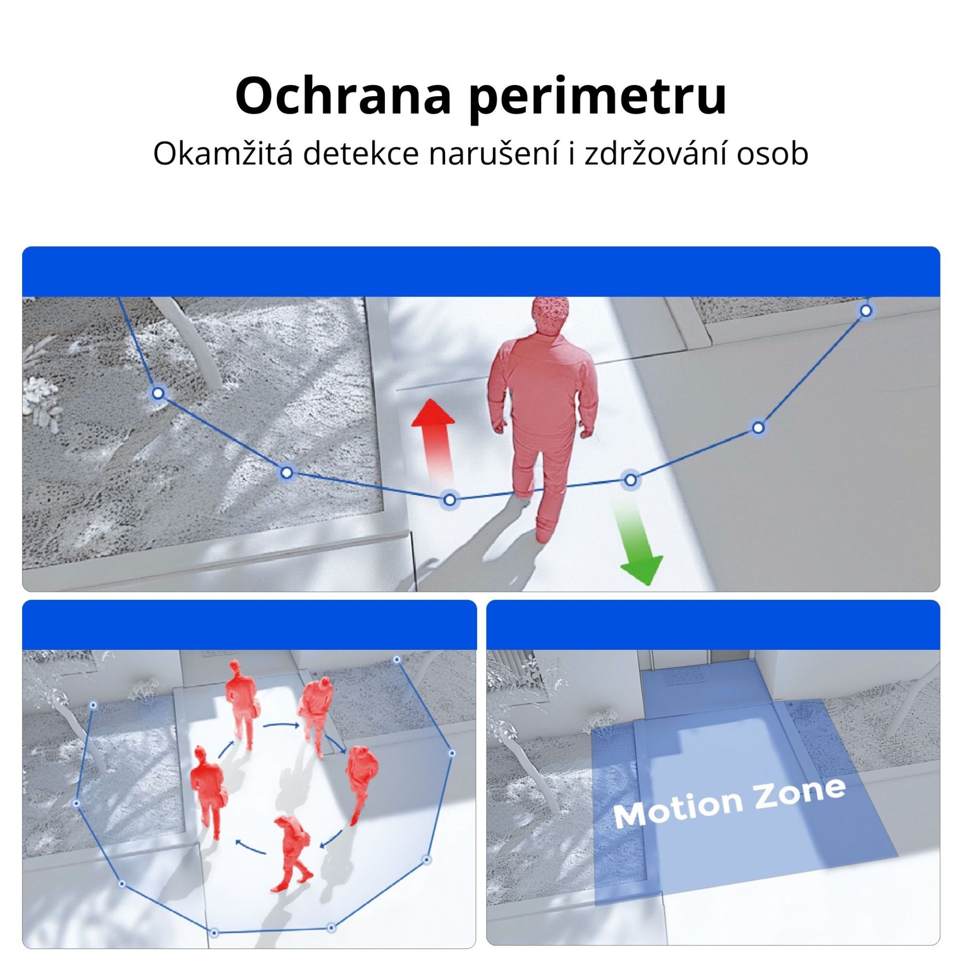 Ochrana území: výstraha při překročení hranice, výstraha při vniknutí do zóny, výstraha při zdržování se v zóně.