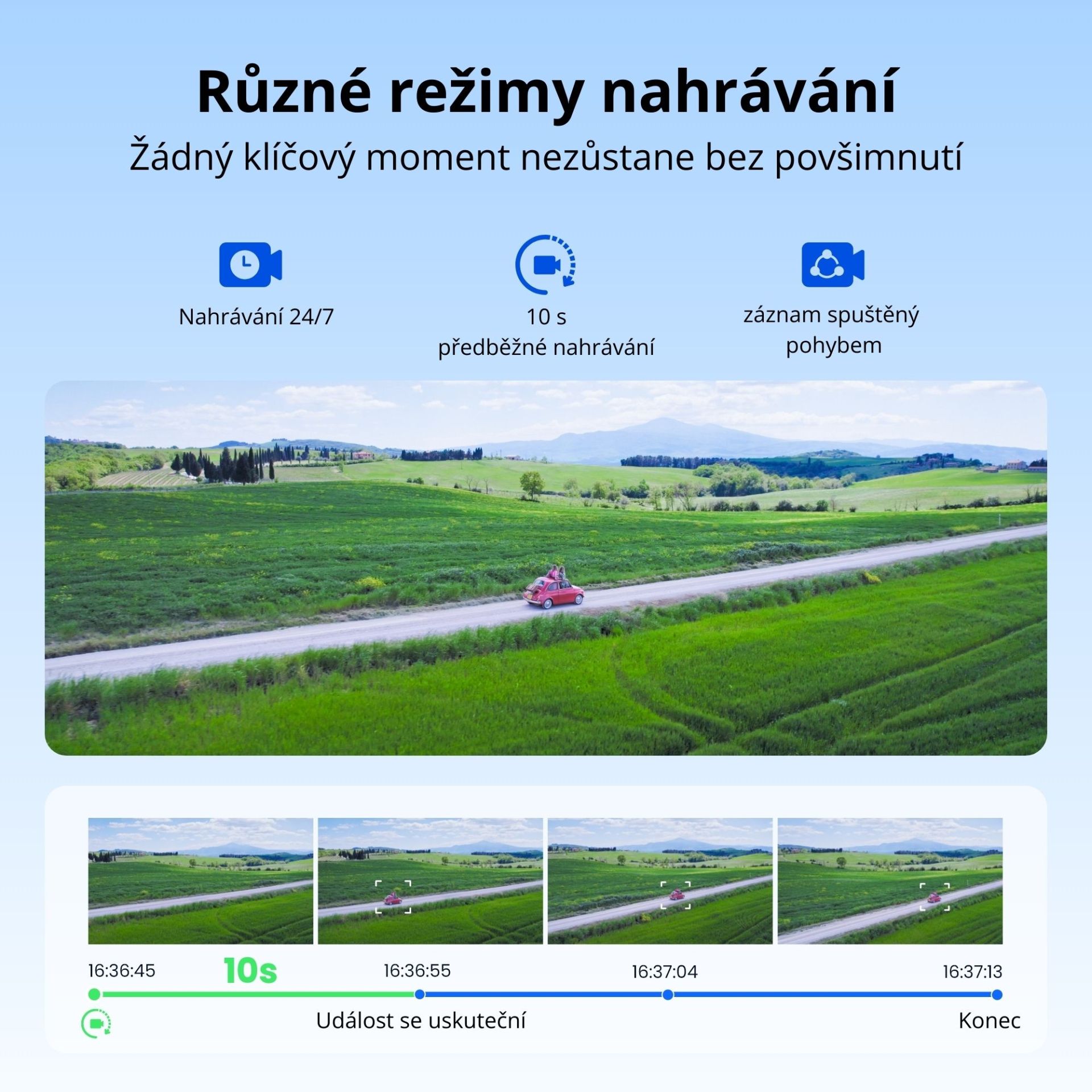 Režimy nahrávání: záznam spuštěný pohybem, plánované nahrávání, nahrávání 24/7.