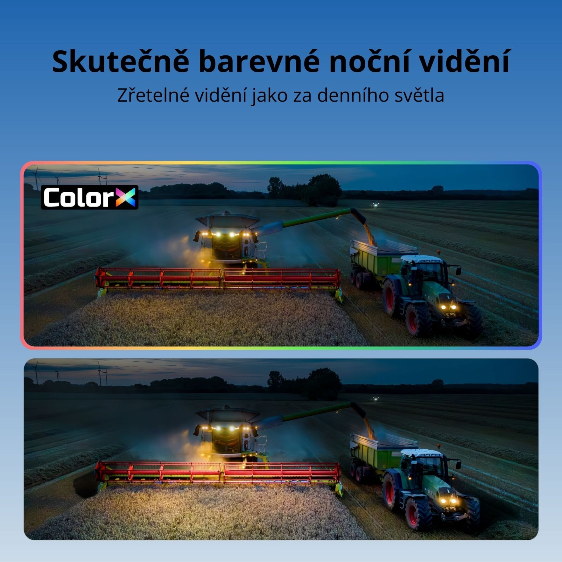ColorX noční vidění: Díky ultra-velkému F1.0 objektivu a pokročilým snímačům poskytuje kamera plně barevné noční vidění bez potřeby externího osvětlení. Potřebujete větší jasnost? Zapněte reflektor pro lepší identifikaci. Preferujete diskrétnější nastavení? Přepněte do infračerveného režimu a pořizujte černobílé záběry až na vzdálenost 30 metrů.