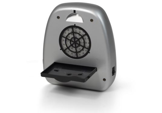 Ochrana proti komárům s úchytem na stěnu a sběrným zásobníkem na hmyz.