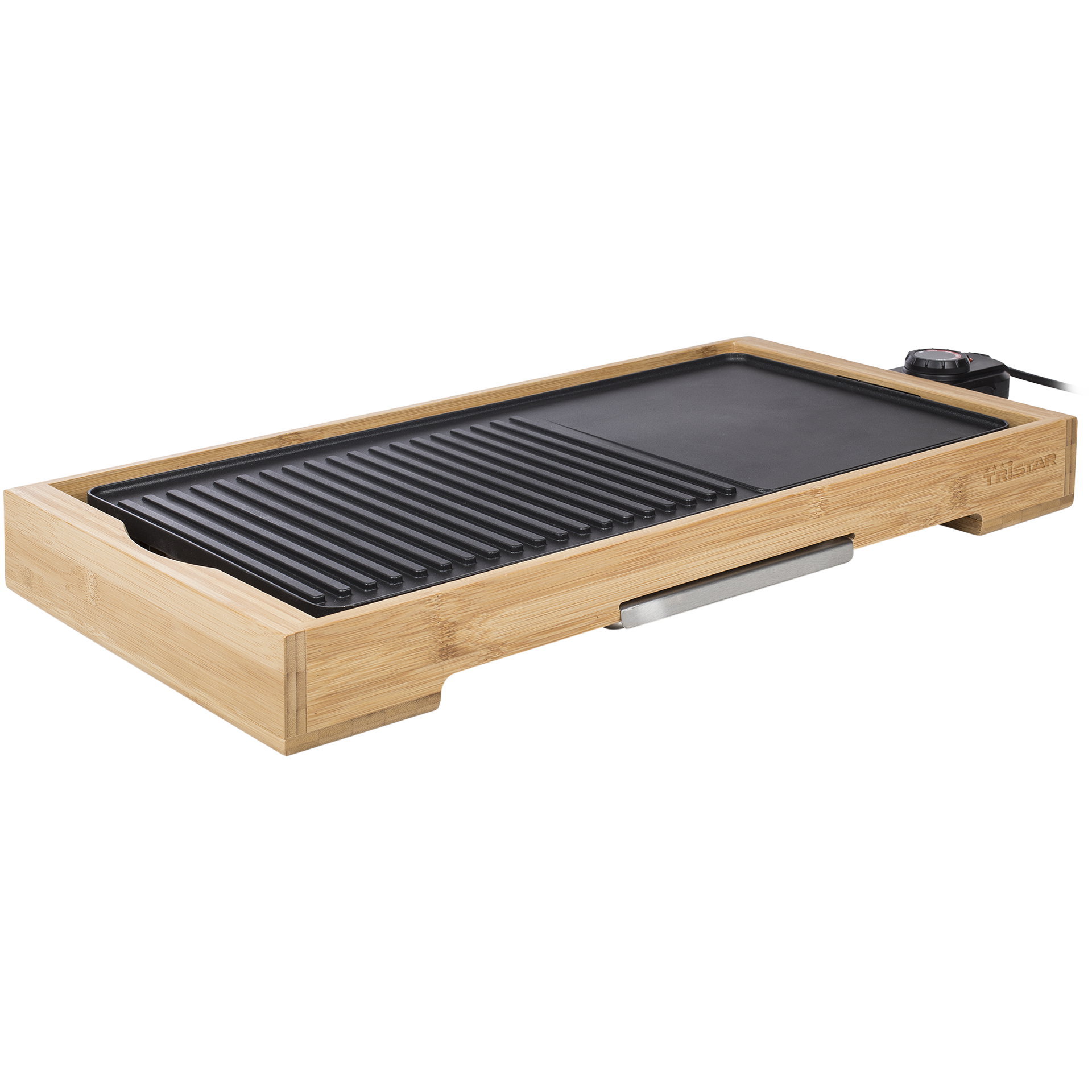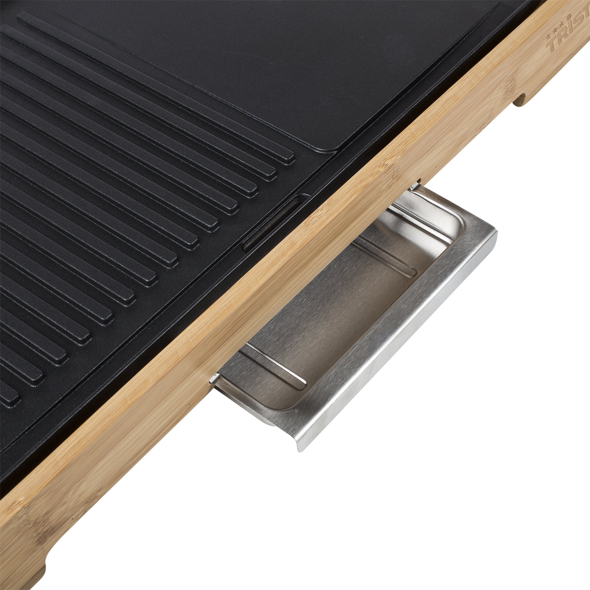 Designový stolní gril v krásném provedení v bambusovém rámu. Grilovací plocha o rozměru 51 x 25,4 cm je kombinace plochého a vroubkovaného povrchu vhodnou pro přípravu masa, zeleniny a dalších.