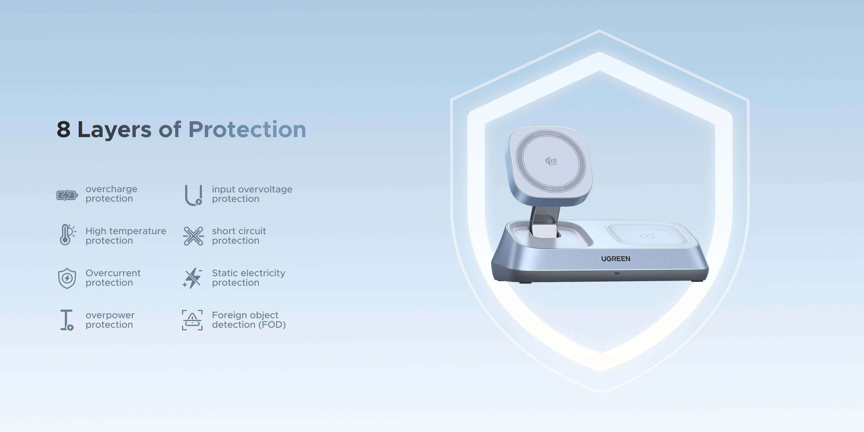 - 8-vrstvá ochrana: chrání vaše zařízení před přebitím, přepětím, přehřátím, zkratem, nadproudem, statickou elektřinou, přetížením i cizími předměty.