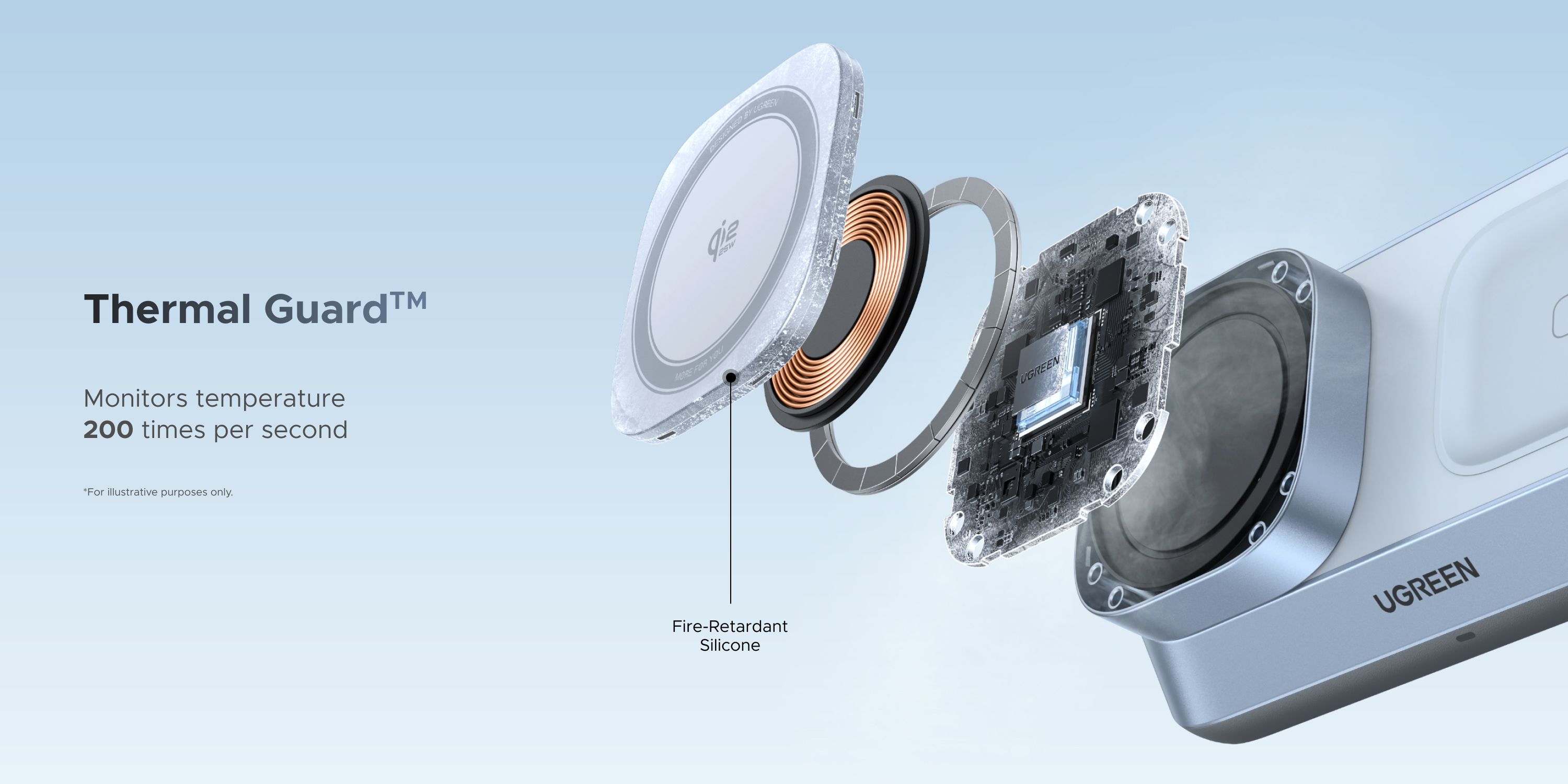 - Monitoring teploty 200x za sekundu – vaše zařízení jsou v bezpečí i při dlouhodobém nabíjení.