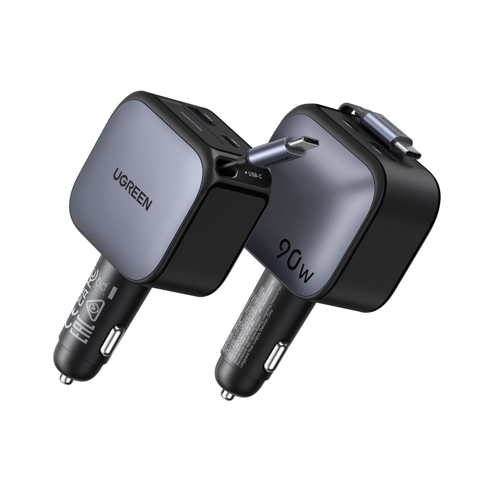 UGREEN 55909B Rychlonabíječka do auta s výsuvným kabelem USB-C 90W