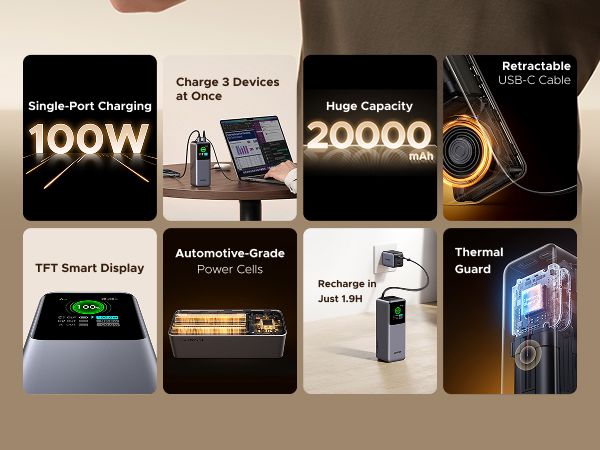 Zatímco běžné powerbanky sotva nabijí váš telefon, tato bestie dokáže napájet i ten nejnáročnější laptop. S výkonem až 100W na jeden port nabije MacBook Pro, Dell XPS, nebo jakýkoliv jiný výkonný notebook stejně rychle jako originální nabíječka!