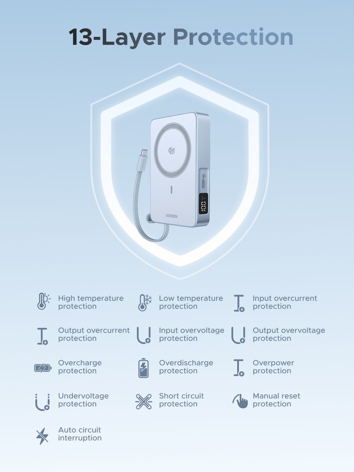 S UGREEN 65958 Magnetickou Powerbankou 10000 mAh 25W získáváte nejen špičkový výkon, ale i absolutní svobodu a klid v duši. Tohle není jen další powerbanka. Je to vaše nová jistota, že budete vždy připojeni, ať už jste kdekoliv.