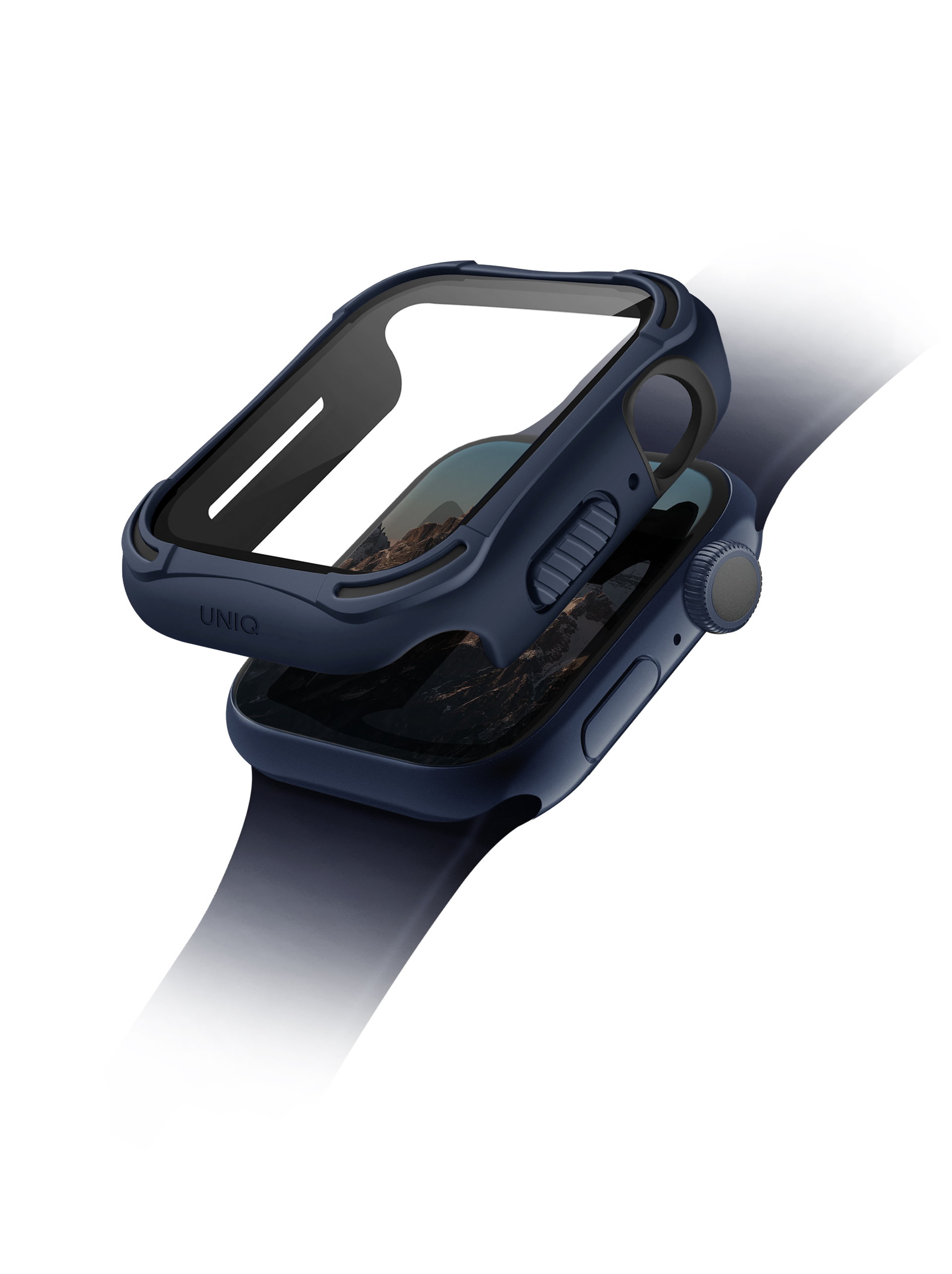 Antimikrobiální ochranné pouzdro s 9H tvrzeným sklem UNIQ TORRES pro Apple Watch 44MM, modré.