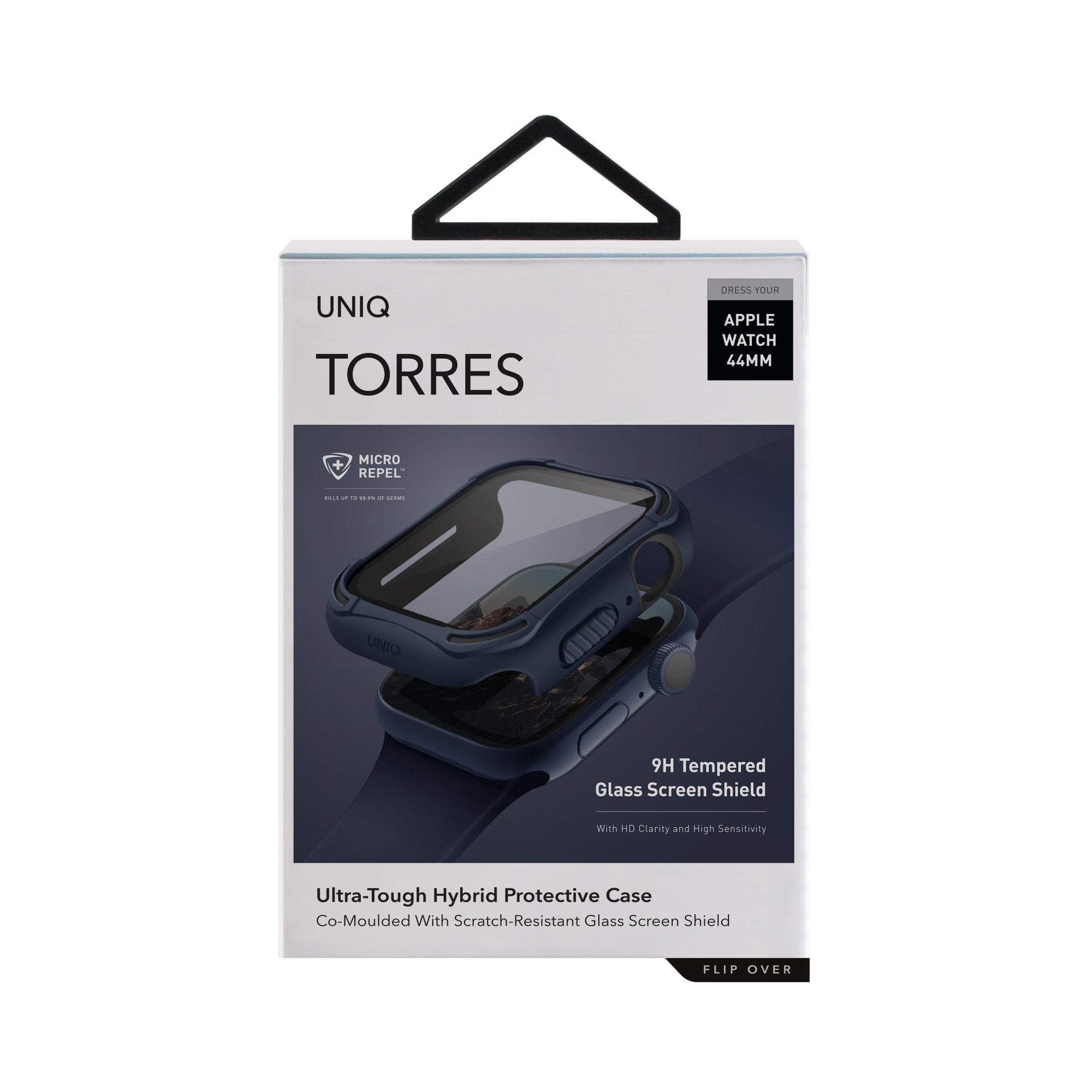 UNIQ TORRES antimikrobiální ochranné pouzdro s 9H tvrzeným sklem pro Apple Watch 44MM modré