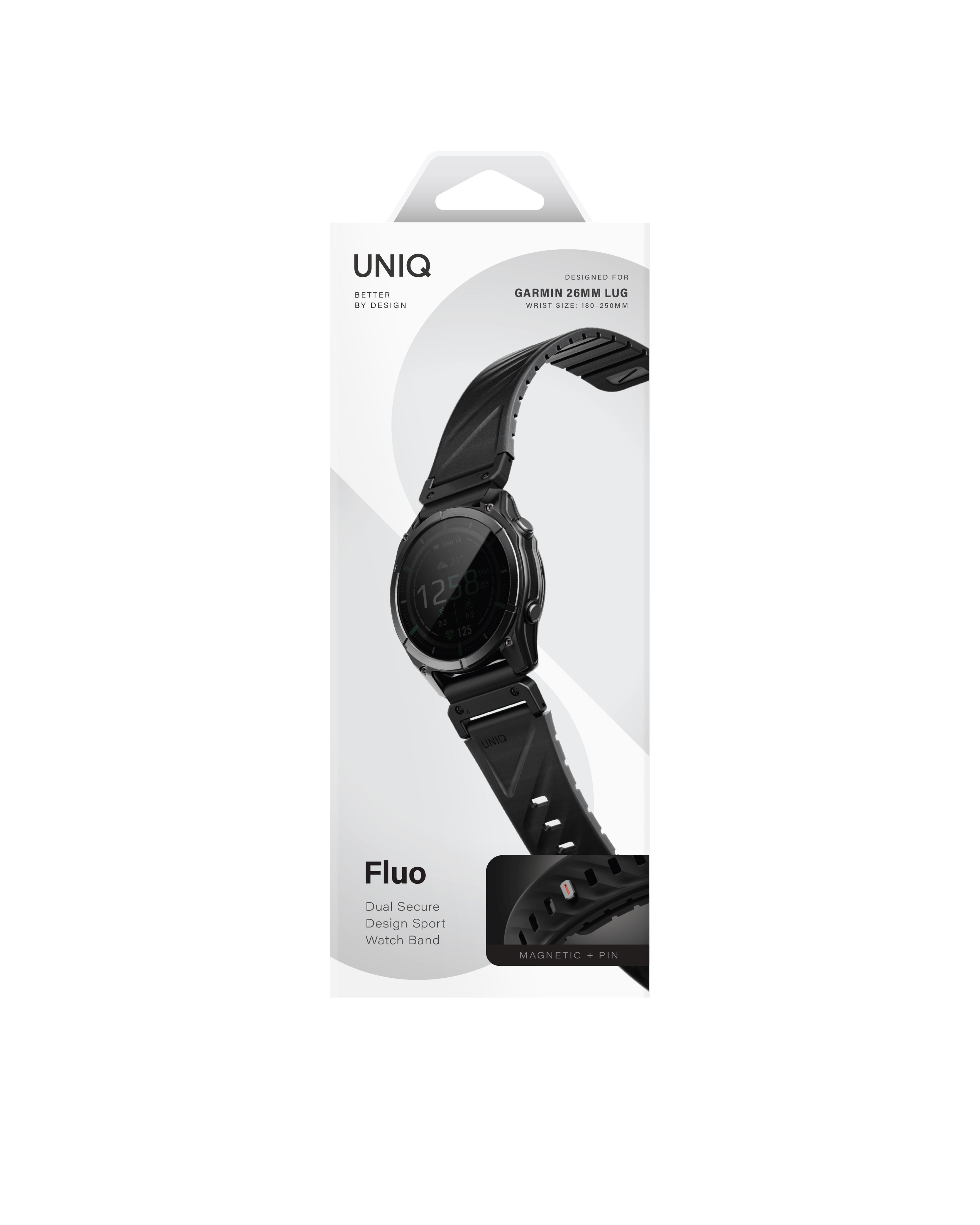 UNIQ Fluo magnetický řemínek pro Garmin SmartWatch 26 mm, Midnight black