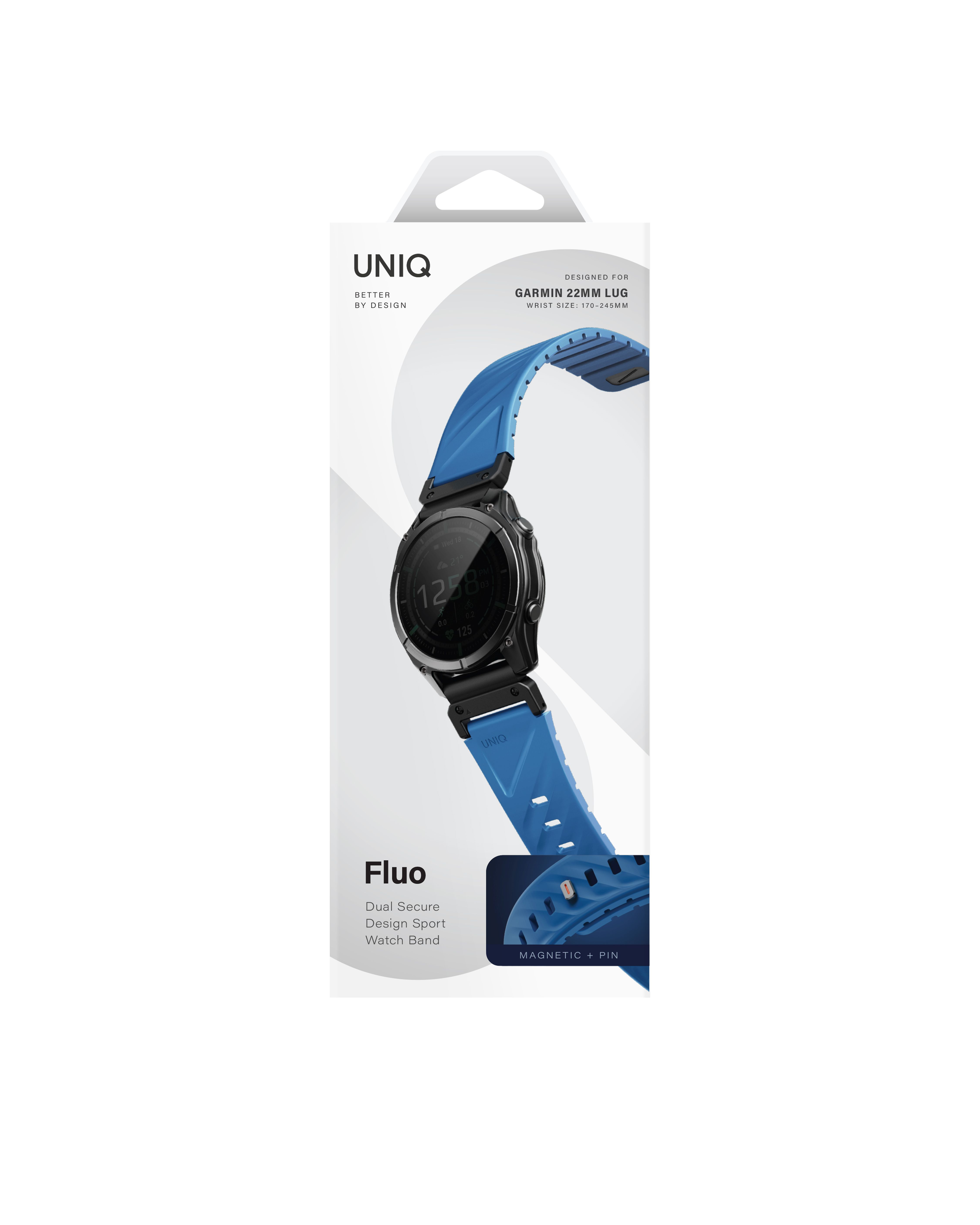 UNIQ Fluo magnetický řemínek pro Garmin SmartWatch Quick Release/QuickFit 22 mm, Ocean blue