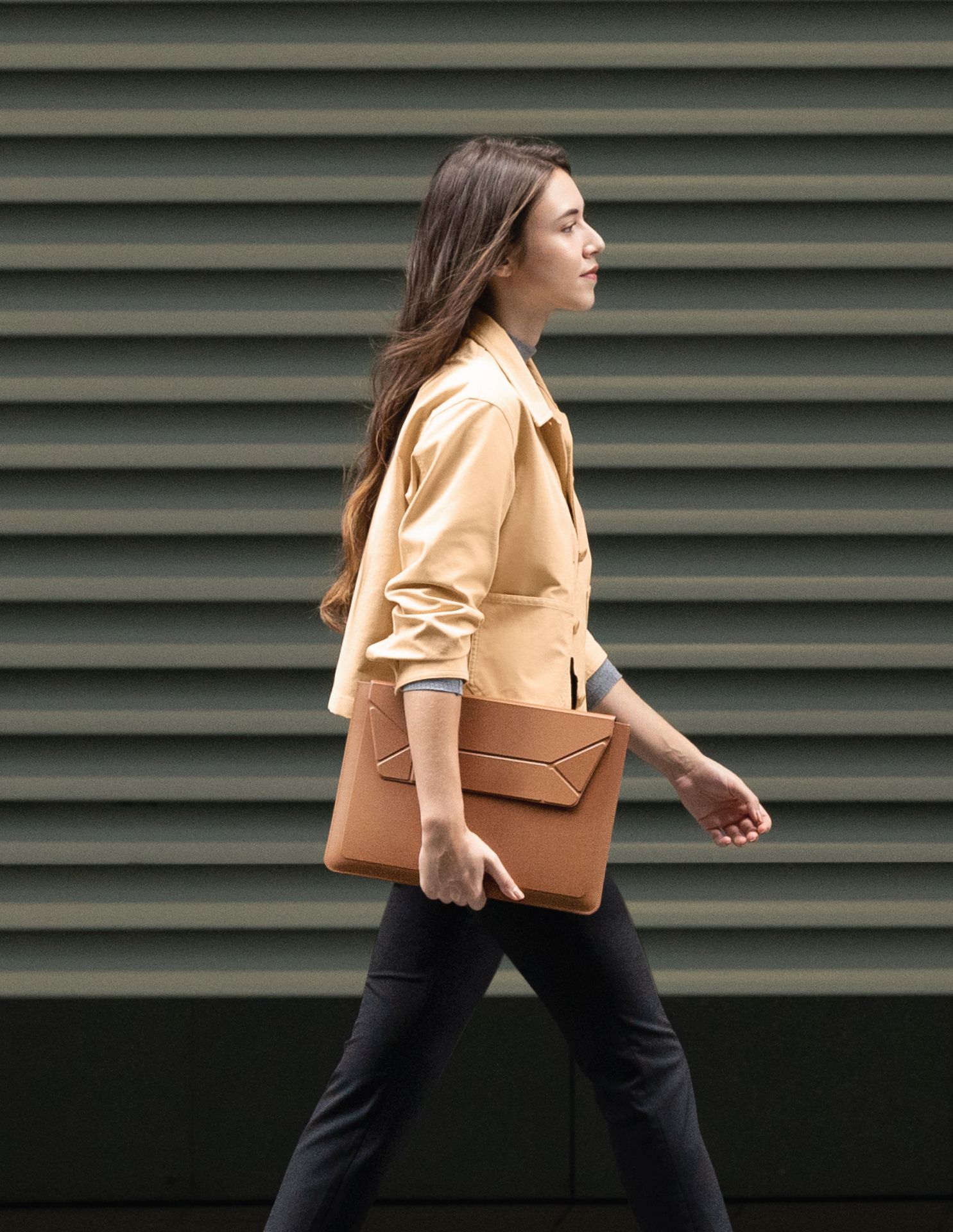 Během několika sekund se tento chytrý kryt umí složit do optimalizovaného úhlu 25° a promění se v přenosnou pracovní stanici.