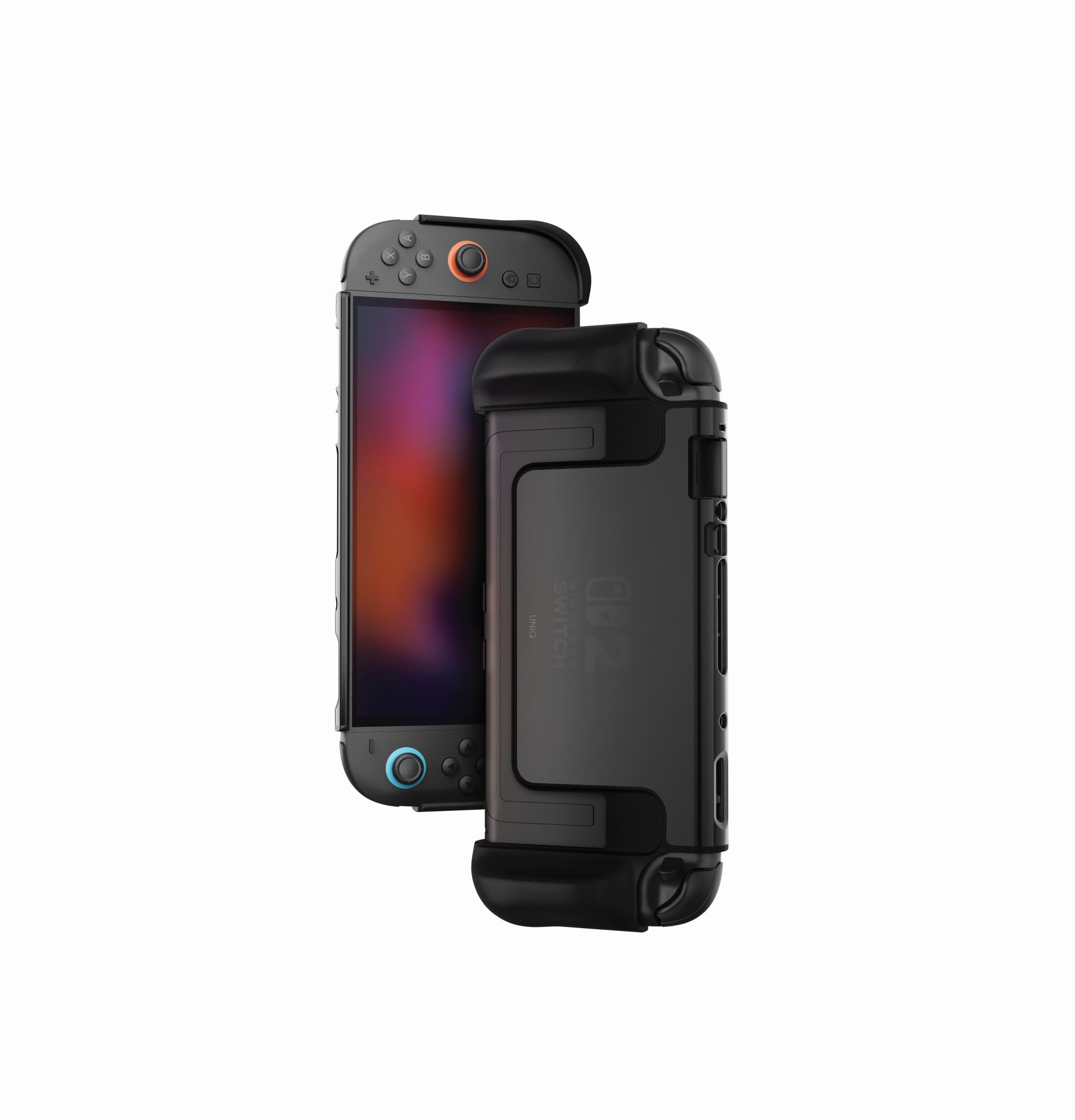 Ergonomický tvar krytu přirozeně padne do ruky a umožňuje komfortní hraní v ručním režimu. Přesné výřezy zajišťují snadný přístup ke slotu pro herní kartu, paměťovou kartu, portům i vestavěnému stojánku. Kryt je navržen tak, aby mohl zůstat nasazený při hraní, přepínání režimů i při dokování konzole.
